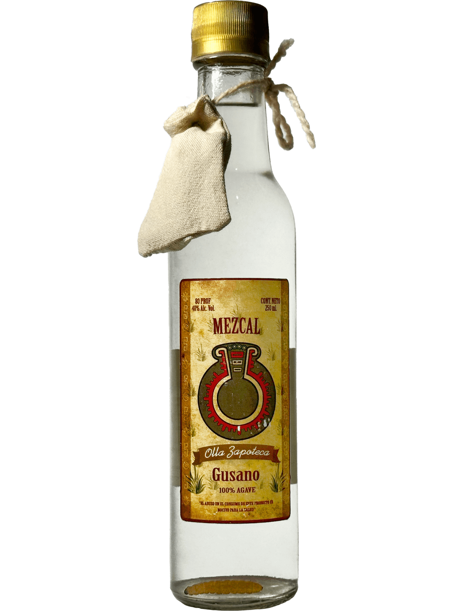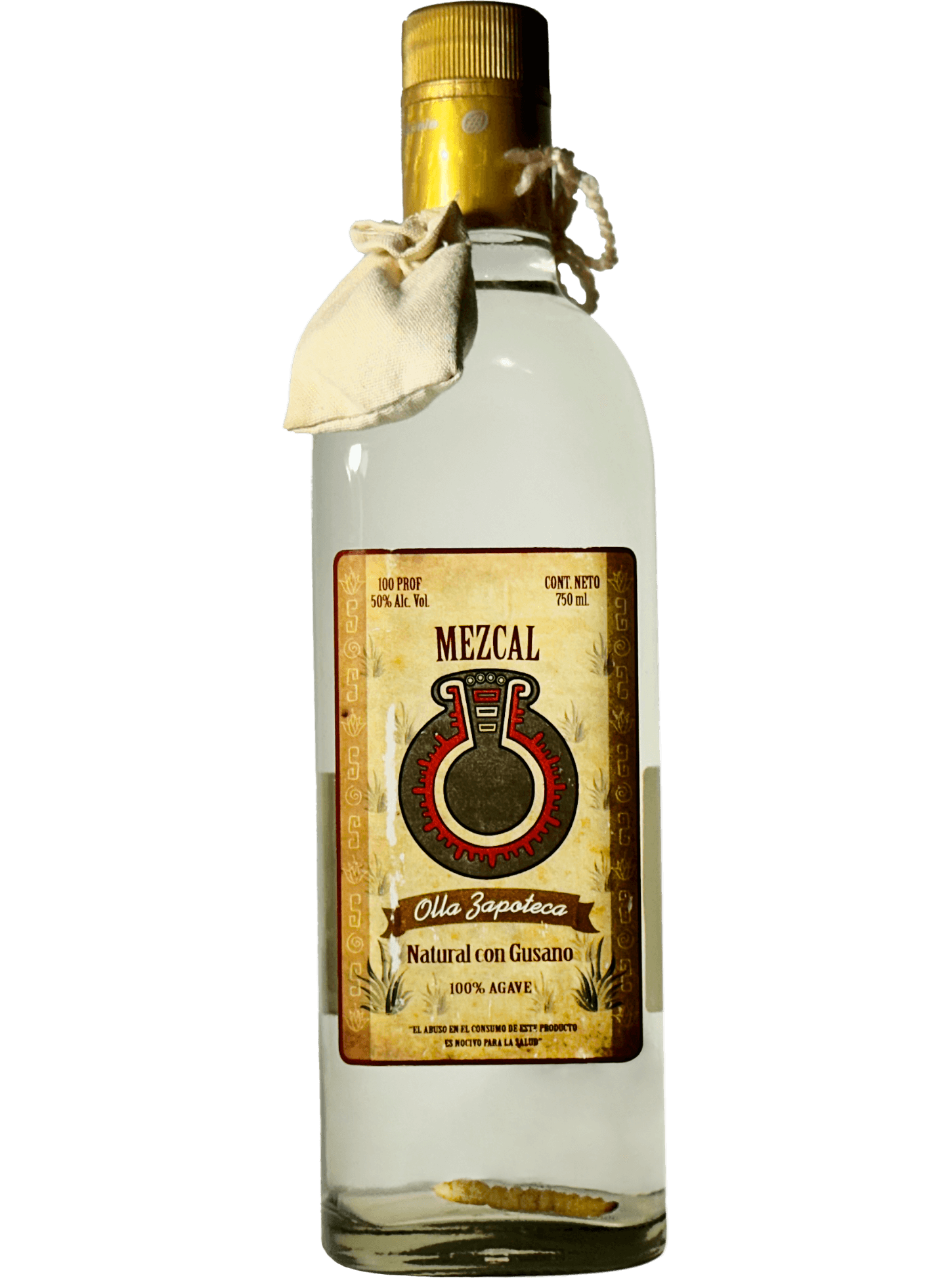Mezcal tradicional 100% de agave, incluye un gusano que resalta su autenticidad.